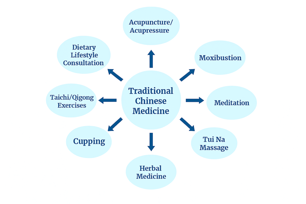 Acupuncture and massage are two distinct but often complementary practices; while they work through different mechanisms, they share many benefits, particularly in the areas of pain management and stress reduction. Acupuncture regulates qi and nerve signals, reducing pain perception. Massage (Tui Na / therapeutic massage) relaxes muscles, improves circulation, and releases tension.